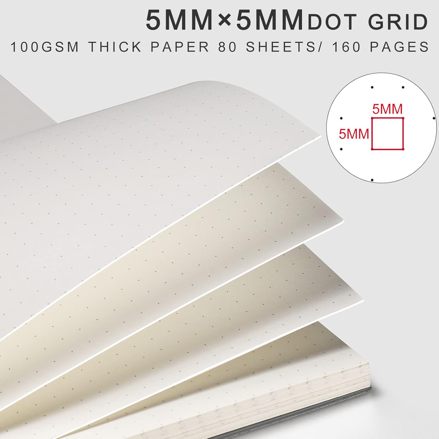Crafted with high-quality 100GSM dotted paper, these notebooks provide the perfect canvas for your bullet journal layouts, doodles, and notes. The bullet dot grid pattern offers versatility and precision, allowing you to create custom spreads that suit your unique style.