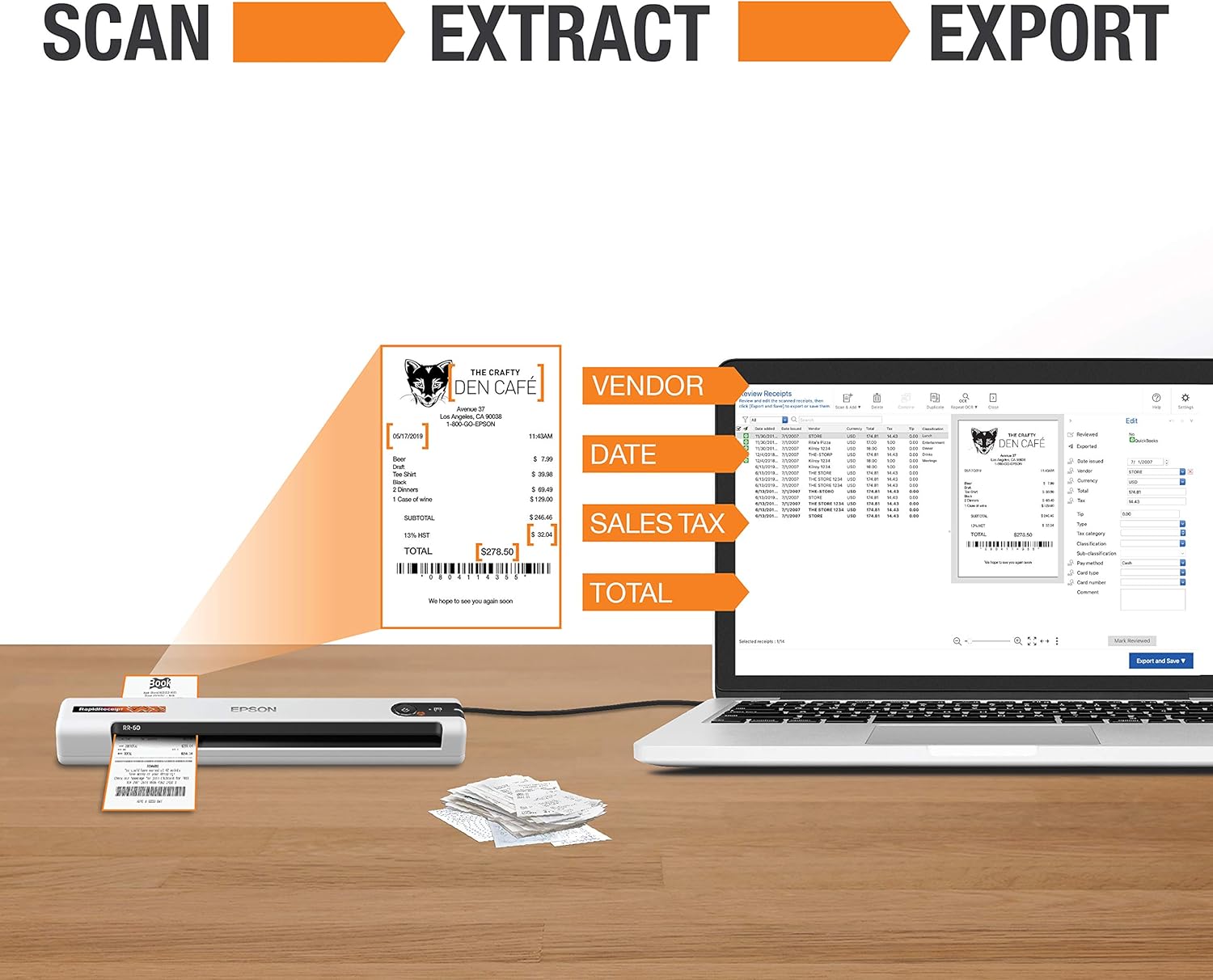 The Epson RapidReceipt RR-60 features ScanSmart AI PRO Receipt Management & PDF Software, a powerful tool that automates the scanning process and extracts key data from receipts and documents with incredible accuracy. Say goodbye to manual data entry and save valuable time and effort.